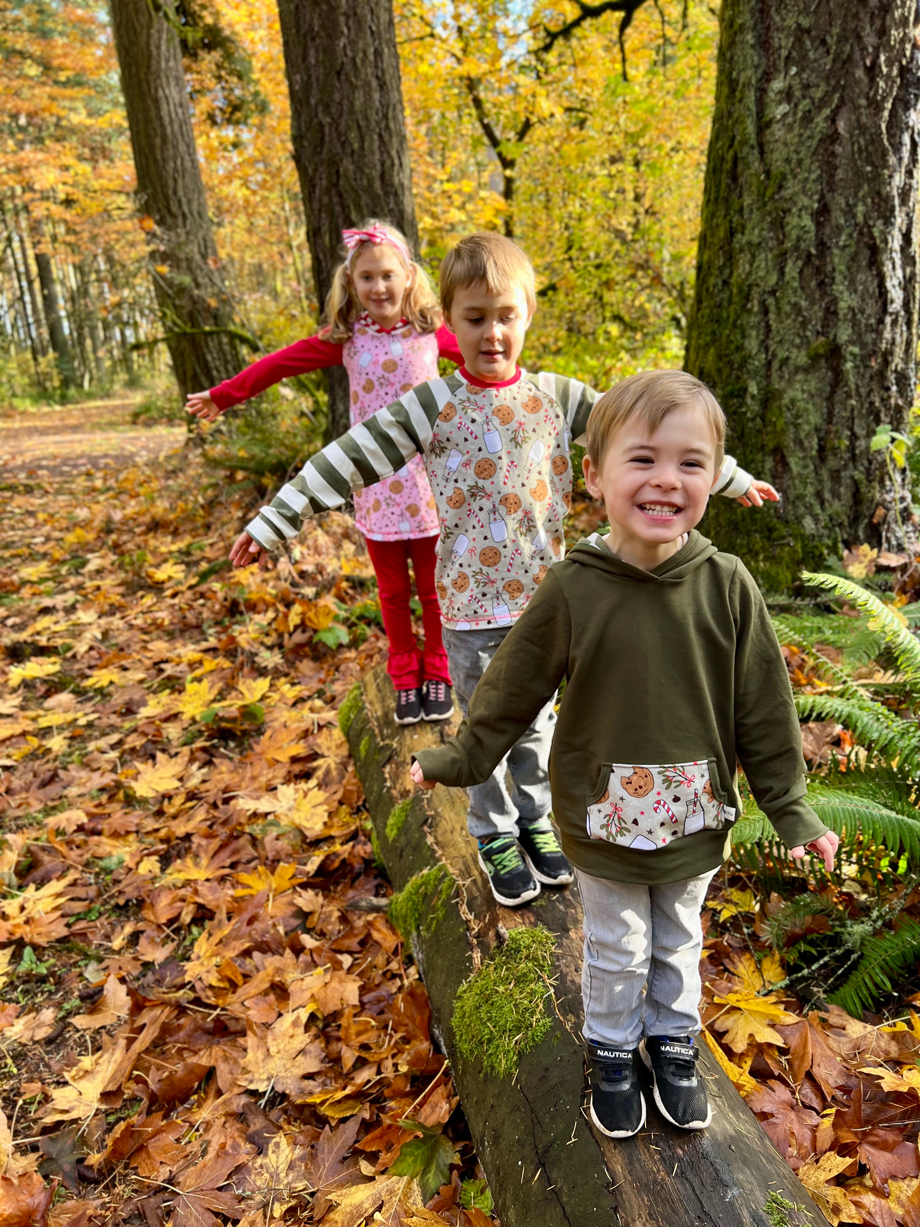 Crafted from ultra-soft olive cotton French terry fabric, this hoodie features a fun festive pocket covered in milk, cookies, and candy canes — just what every little elf needs for snack time! The relaxed fit and soft stretch make it perfect for layering over tees or under jackets, while the kangaroo pocket adds a playful touch (and a perfect spot for tiny treasures).