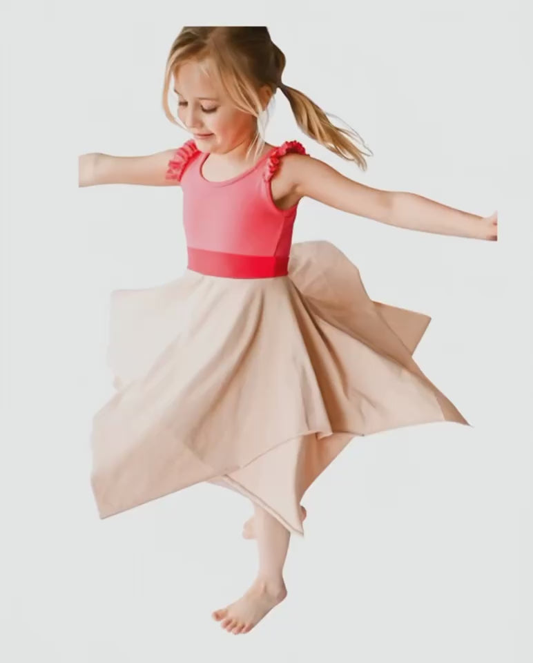 A sweet Moana style lap dress. This will be cut a little longer than Tink. You may still want to wear shorts under for non-stop twirling.